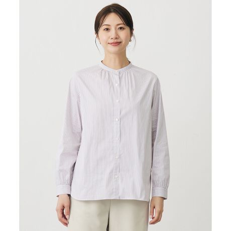 1枚でもレイヤードでも使える、トラッドな印象のバンドカラーブラウス