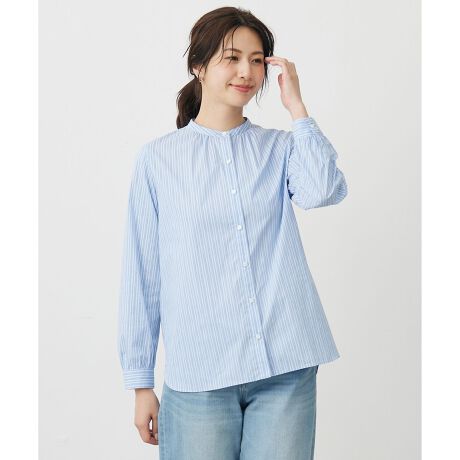 1枚でもレイヤードでも使える、トラッドな印象のバンドカラーブラウス