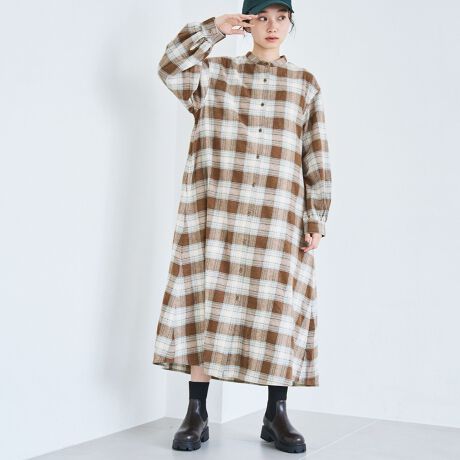 風合い豊かなコットンネル素材に、オリジナルのオンブレチェック柄をのせ、表情豊かな一枚に仕上げました。