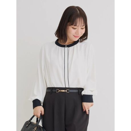 かっちりした印象のジャケットとも好相性の上品ブラウスです。