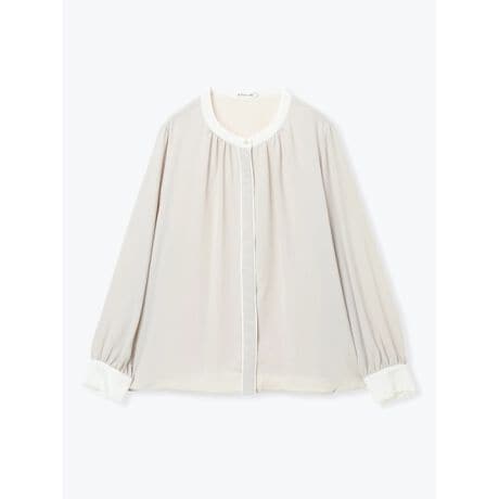 かっちりした印象のジャケットとも好相性の上品ブラウスです。