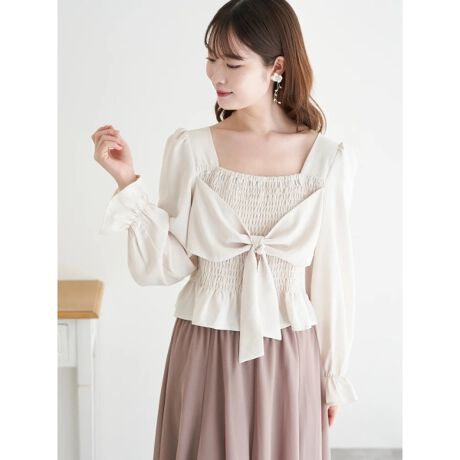 ガーリーなリボンデザインが大人の華やぎをプラスするブラウス。