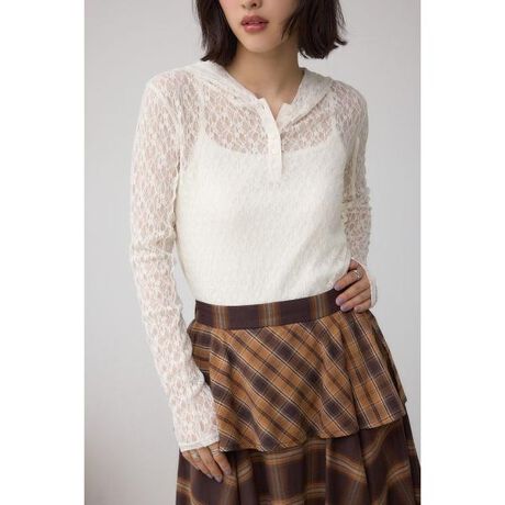 ■ヘンリーネックレースフーディートップス■ポイント1枚でもレイヤードスタイルでも決まるフーディートップス。トレンドのフードデザインがポイントです。■ディテールボディラインを拾いすぎない、程よくストレッチの効いたレース素材で着心地が良いです。コーディネートの主役としても、レイヤードアイテムとしても着回しができ、ロングシーズン着用できます。■スタイリング暑い季節は1枚で着ていただき、グラフィックTシャツなどカジュアルなアイテムをレイヤードしたスタイルも今季おすすめです。■生地伸縮性のあるレース素材を使用しています。柄の見え方には個体差がありますが素材特性によるものです。透け感:あり裏 地:なし伸縮性:あり光沢感:なし[注意事項]※画像の商品はサンプルです。実際の商品と仕様、加工が若干異なる場合があります。※画像の商品は光の照射や角度、お使いのモニター環境により、実物と色味が異なる場合がございます。※着用、お取り扱いの際は、アテンションタグをご確認ください。