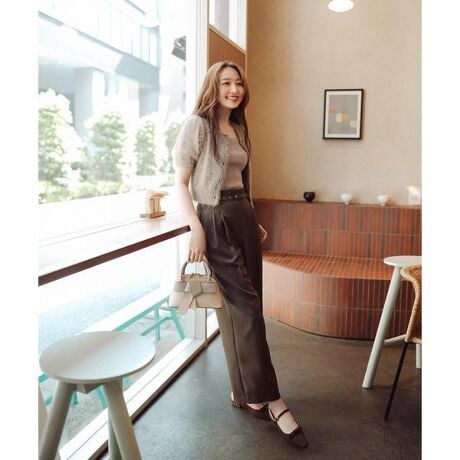 【ちょうど、いい服】共布ベルトでキュッとウエストマークすれば一瞬でくびれが!程よいワイドシルエットで、おしゃれ感増し増しパンツ。共地ベルトでしっかりハイウエストマークができ、スタイルアップを叶えてくれます。さらにオーバーすぎないワイドシルエットで脚のラインをカバー。共地ベルトのホールやピンのゴールドカラーがさり気なく光って高級感をプラスしました。シャツブラウスやニットプルオーバーまで合わせやすく、ONにもOFFスタイルにも着回せます。<素材>メランジ感ある表面とさらっとしたタッチの合繊素材を使用。ご自宅でお洗濯可能です。<詳細>仕様・前ファスナー裏地・なし透け感・なし / 光沢・なし / 伸縮性・なし生地の厚さ・普通※モデルの着用画像の場合、光の当たり具合により、実際の色味と異なって見えることがございます。色味は、商品単体の画像をご参照ください。