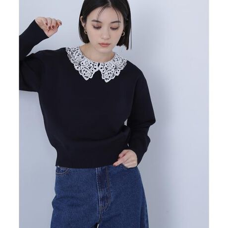 NBBオリジナルのレース柄の襟付きで、きちんと感と華やかさを叶えるニットプルオーバー。レース襟は内側の釦で取り外しできます。身頃はフォルム感のあるシルエットで、裾はブラウジングできるリブ編みのためアウトスタイルがおすすめ。ストレートパンツやフレアスカートも合わせやすく、幅広いコーディネートが楽しめます。<素材>ボディはフォルム感がキレイに出るポリエステル糸を総針編みで編み立てています。<詳細>仕様・後ろボタン裏地・なし透け感・なし / 光沢・なし / 伸縮性・あり生地の厚さ・普通※モデルの着用画像の場合、光の当たり具合により、実際の色味と異なって見えることがございます。色味は、商品単体の画像をご参照ください。