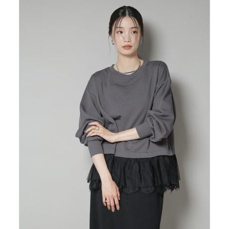 ・裏毛素材に繊細なレースとチュールをドッキングさせた華やかなトップス