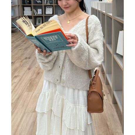 立体感のあるウェーブシャギーが映えるシンプルなVネックカーディガン。ウェーブ状の起毛加工を施したふわふわのタッチに、貝調ボタンがアクセントになっています。厚手すぎず、程よいボリュームの編地なので、秋はアウターの代わりに羽織ったり、冬はコートインにもぴったり。ミニボトムスにも合わせやすい着丈感で、低身長さんにもおすすめです。デニム合わせはもちろん、ミニティアードスカート、プリーツスカートも相性バツグン。Tシャツやタートルネックニットなどとレイヤードも楽しめます。※モデルの着用画像の場合、光の当たり具合により、実際の色味と異なって見えることがございます。色味は、商品単体の画像をご参照ください。