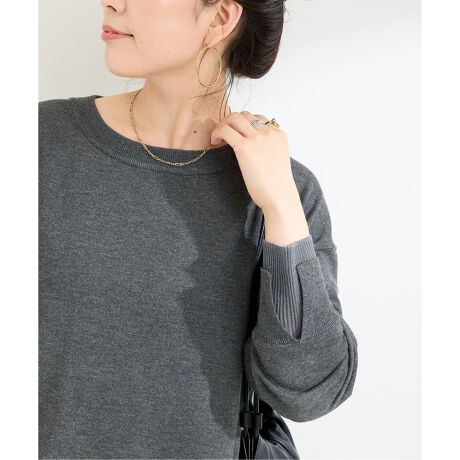 着心地:ハイゲージの綺麗目な、さらっと生地感でラクに着られます。
