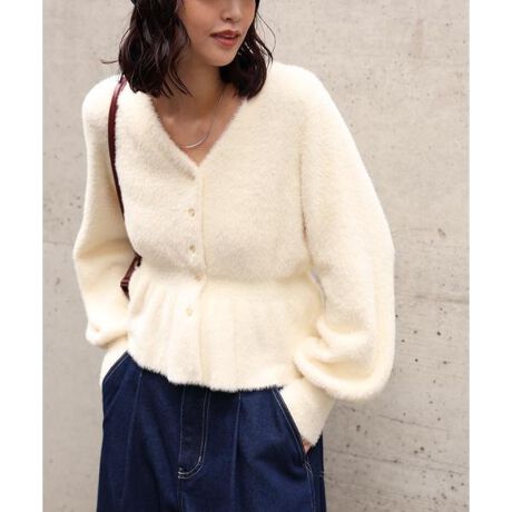 毎年ご好評のカーディガンが今年も登場!トップスとしても羽織りとしても使える、軽やかな着心地のシャギーニットカーディガン。毛足が短く肌に触れてもチクチクしにくい素材を使用、柔らかく滑らかなタッチの糸で仕上げました。シャギーの毛は抜けにくく、しっかりと目が詰まっています。ウエストをリブ編みにしてシェイプさせ、裾はペプラムにすることでスタイルアップを叶えるシルエット。袖口にはギャザーを寄せてボリュームスリーブになっています。1枚でニットプルオーバーのようにも、インナーにブラウスやハイネックトップスを合わせたり、前開きにしてワンピースなどの羽織りにも着回せます。※モデルの着用画像の場合、光の当たり具合により、実際の色味と異なって見えることがございます。色味は、商品単体の画像をご参照ください。