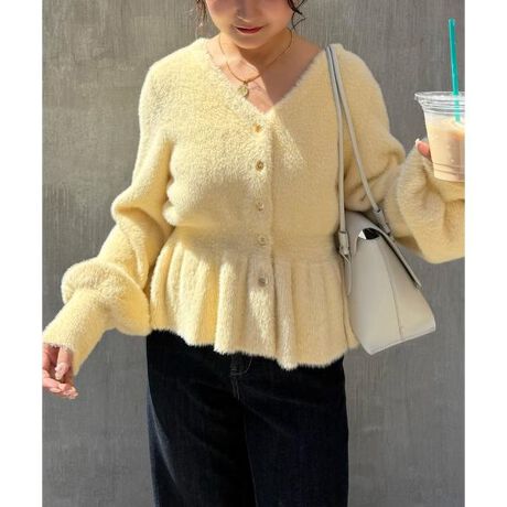 ショートシャギーペプラムニットカーディガン