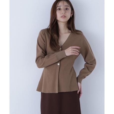 ウエストをシェイプしたニットカーディガン。前ボタンを留めた時にウエストがきゅっと入るシルエットです。ボタンの位置は高めにし、一番下までボタンを付けていないので、スリット風に開くデザインです。フロントはライトゴールドカラーのエンブレム釦をつけて、上品な印象を演出。すっきりとしたストレートパンツやナロースカートとのコーディネートがおすすめです。<素材>ぬくもりのあるタッチの糸を使用し、程よい肉感とすっきりとした表面の見え方のミラノリブの編地で編み立てています。<詳細>仕様・前ボタン裏地・なし透け感・なし / 光沢・なし / 伸縮性・あり生地の厚さ・普通※モデルの着用画像の場合、光の当たり具合により、実際の色味と異なって見えることがございます。色味は、商品単体の画像をご参照ください。