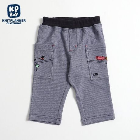 前ポケットに電車モチーフの刺しゅうがデザインされ、おしり周りがゆったりとしたシルエットになっている履き心地の良い7分丈パンツです。ウエスト総ゴム仕様になっています。