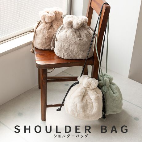 手触りのいいラビット調のファー生地を使用した巾着ショルダー。