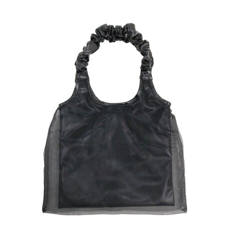 合皮とチュール生地のコンビ使いが印象的なギャザーハンドルチュールトート。