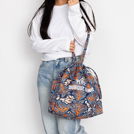 紐を縛ればドロストにもなるのでトートと巾着の2通りのデザインが楽しめます。