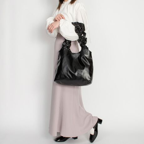 トレンドのギャザーハンドルデザインがポイントのフリルハンドルトート。