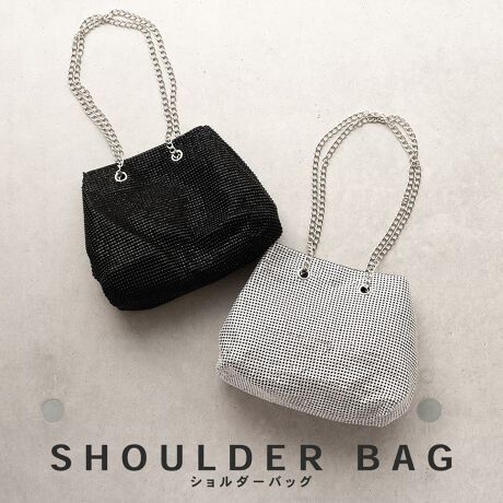チェーンを2連にして手持ち&肩掛け、1連で長くして斜めがけにもできる2way仕様。