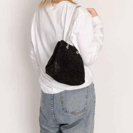 キラキラビジューと華奢なチェーンストラップがリッチで華やかな巾着バッグ。