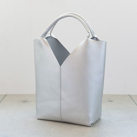 トライアングルにカットされたデザインがポイントのオールシーズン使えるトートバッグ。