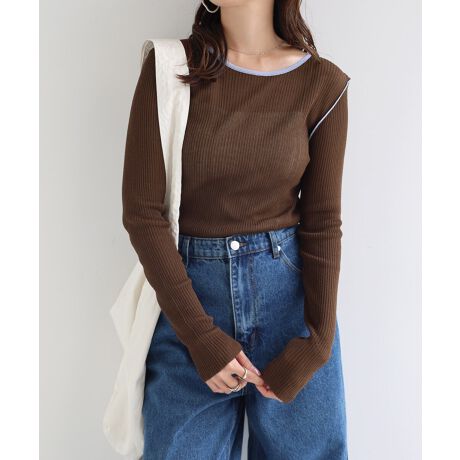 バイカラー 長袖 シアー ニット トップス