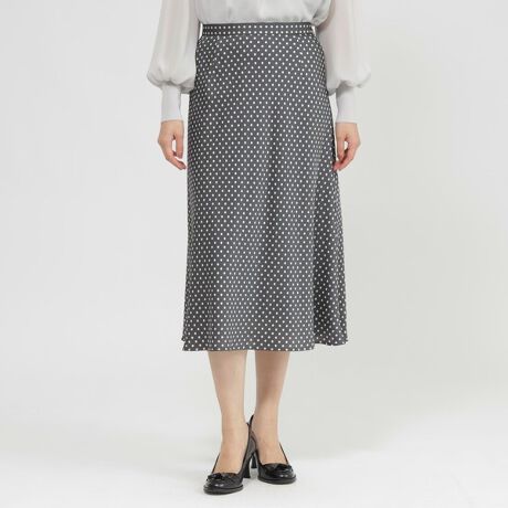 柄方向をバイアスに使用し、同素材のブラウス(K1L09621)とのセットアップでの着こなしは同素材のワンピース(K1J06621)と異なる雰囲気を楽しめます。
