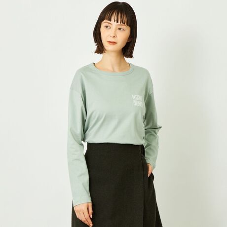 ブランドロゴをシャープなイメージにしたシンプルな長袖Tシャツ。
