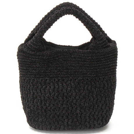 まるい感じが魅力のニットトートバッグ。