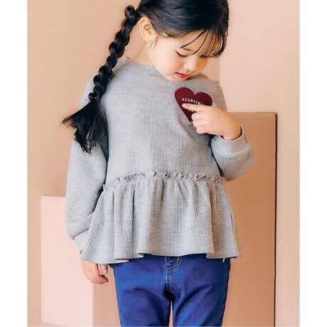 apres les cours(アプレレクール)の長袖Tシャツ「ワッフルペプラムハートモチーフTシャツ」は、ナチュラルなスタイルにさりげなくデザインをプラスしたおしゃれアイテム*