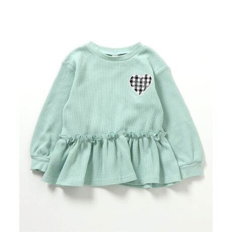 apres les cours(アプレレクール)の長袖Tシャツ「ワッフルペプラムハートモチーフTシャツ」は、ナチュラルなスタイルにさりげなくデザインをプラスしたおしゃれアイテム*