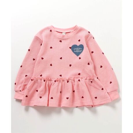apres les cours(アプレレクール)の長袖Tシャツ「ワッフルペプラムハートモチーフTシャツ」は、ナチュラルなスタイルにさりげなくデザインをプラスしたおしゃれアイテム*