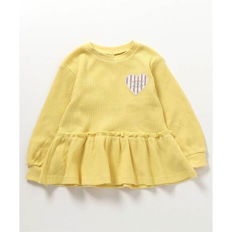 apres les cours(アプレレクール)の長袖Tシャツ「ワッフルペプラムハートモチーフTシャツ」は、ナチュラルなスタイルにさりげなくデザインをプラスしたおしゃれアイテム*