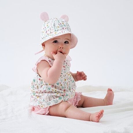 アニマルのようなお耳つきで、ベビーの愛らしい表情を引き立てます。