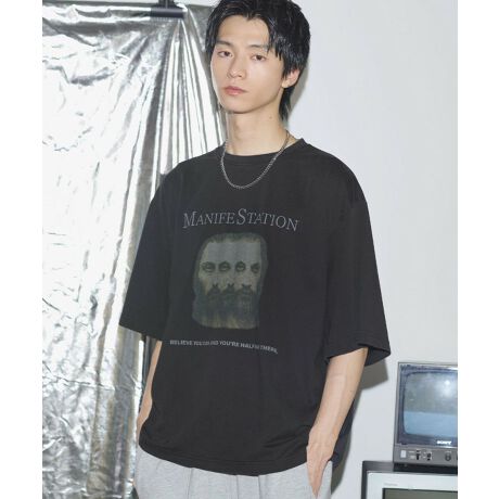 ルーズシルエットマルチプリントグラフィックTシャツ