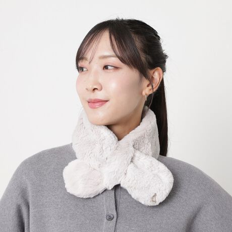 エコファーのふんわりとしたボリュームと丸みのあるシルエットが女性らしいマフラー。