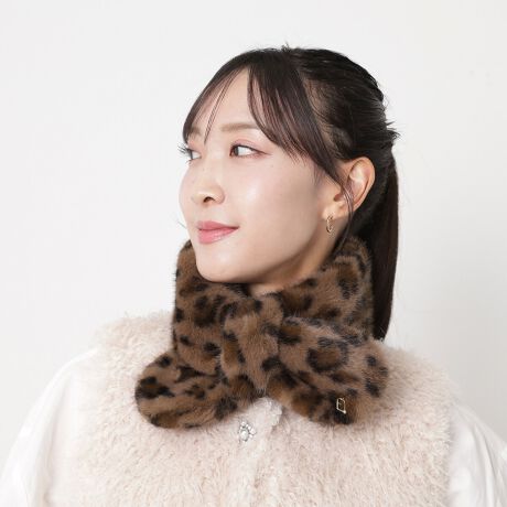 エコファーのふんわりとしたボリュームと丸みのあるシルエットが女性らしいマフラー。
