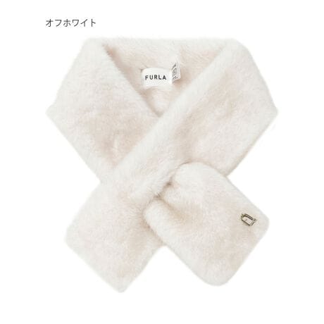 着用しやすいホールに差し込む仕様のフェイクファーを使用したマフラー。