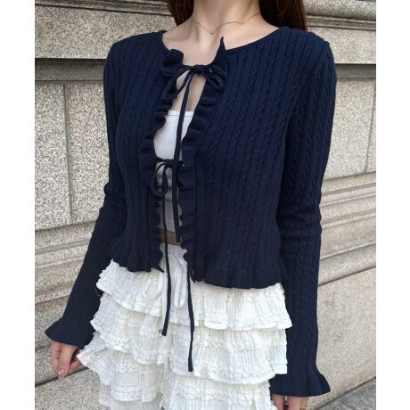 リボンフリルニットカーディガン