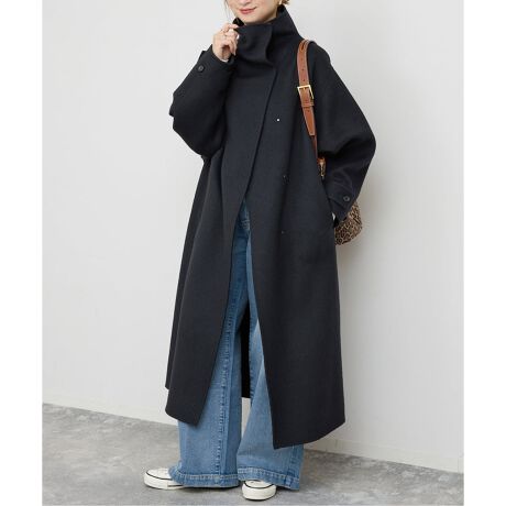 新たに登場したのは、衿元にドレープ感のあるニュアンスを加えたスタンドカラーデザインのロングコート。