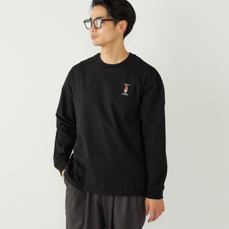 左胸にテディベアの刺繍を施した、シンプルなロンT。