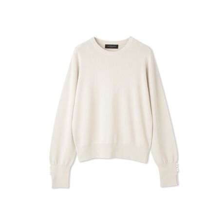袖口にパールボタンをあしらい、可憐で上品な印象に仕上げています。
