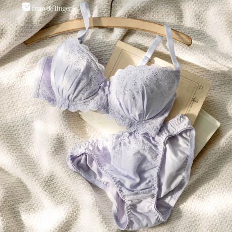 シンプル&ナチュラルなデザインにふわっと柔らかさを添えたコットンレースのデザイン。お肌のデリケートな部分に触れる、ブラのカップ裏は肌に優しい綿100%の天竺綿を使用しているのも人気の秘密。
