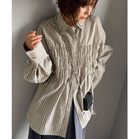 ウエスト部分のシャーリングが自然な立体感を生み出し、シルエットにメリハリをプラス。