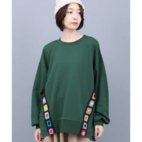 1枚で主役に♪クロシェ風テープが可愛いスウェットトップス