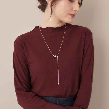 きらきらしたリボンと一粒パール調モチーフが華やかなロングネックレス。