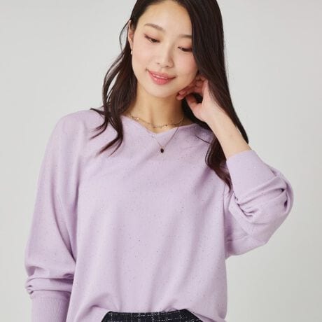 細かなスパンコールが動くたびに繊細な輝きを放ち、シンプルなコーディネートに軽やかに華を添えてくれる一枚です。