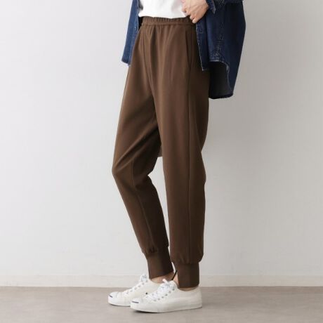 体のラインを拾いにくく、程よい肉感のあるカットジョーゼット素材を、ジョガーパンツデザインに落とし込みました。