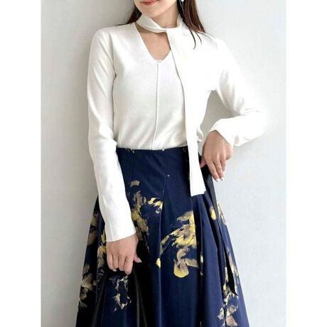 <b>【知的でリュクスなニットトップス。凝ったディテールとアレンジできるタイで、スマートに装える一枚】</b>