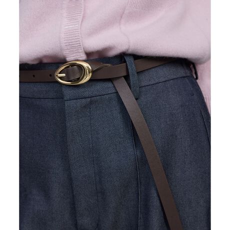 有機的なフォルムのバックルで抜け感のあるスタイリングに合わせたいレザーロングベルト。たっぷりとした自然な落ち感になるようしなやかな牛革をボンディング。アシンメトリーなゴールドカラーのバックルがコーディネートを今シーズンらしくカスタムできるアイテムです。