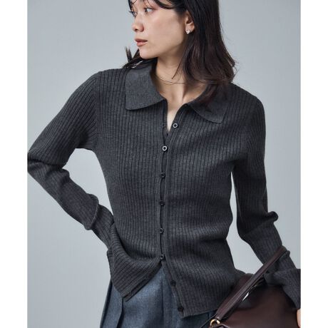 縦リブ編みによりスラリとした印象を演出します。程よい厚みでアウターのインにも最適。