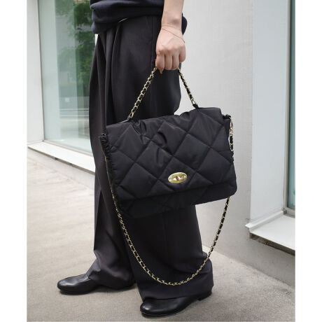 キルティングとチェーンがスタイリングのアクセントになるデザイン。